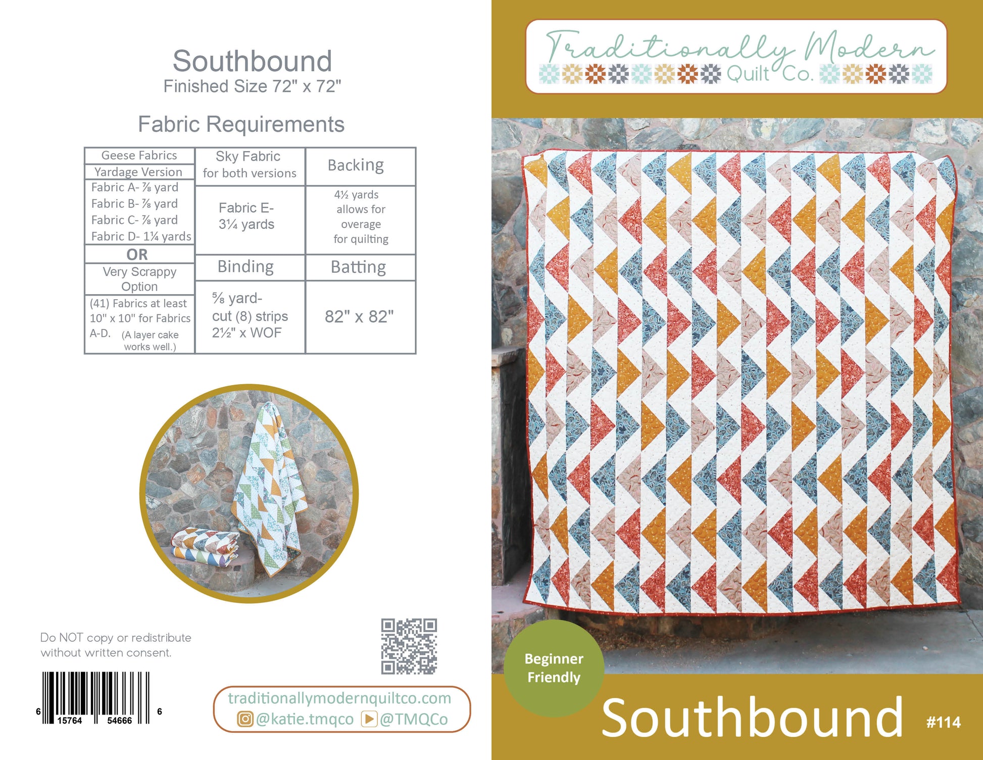 Southbound is a beginner friendly flying geese quilt that is perfect for any occasion. There are QR codes with video instructions for each step.